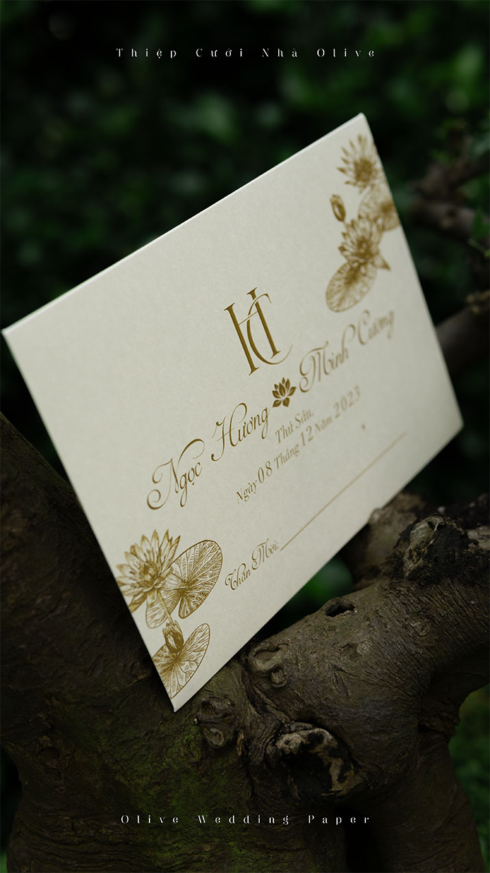 Mẫu thiệp cưới: MC40  -  (Nhấn vào ảnh để xem rõ hơn)  -  Thiệp Cưới Hoa Súng Dân Gian - Water Lily Wedding Invitation - Thiệp cưới được thiết kế dựa trên cụm hoa súng từ dân gian kết hợp yếu tố truyền thống đầy nghệ thuật hiện đại đã tạo nên sự sinh động đầy tinh tế khác biệt. Sự tinh tế từ bộ thiệp cưới thể hiện lời mời cưới trang trọng nhất từ Quý Khách gửi đến những người thân được mời dự tiệc cưới.